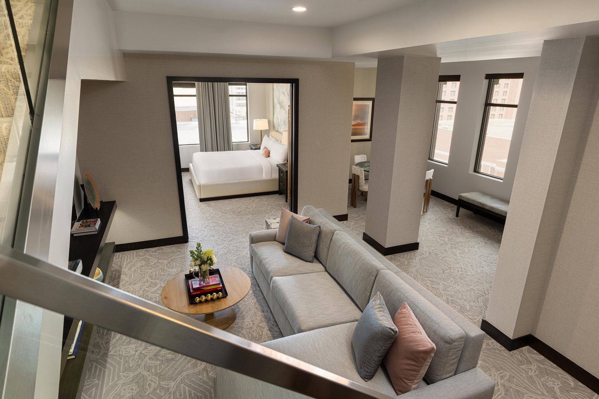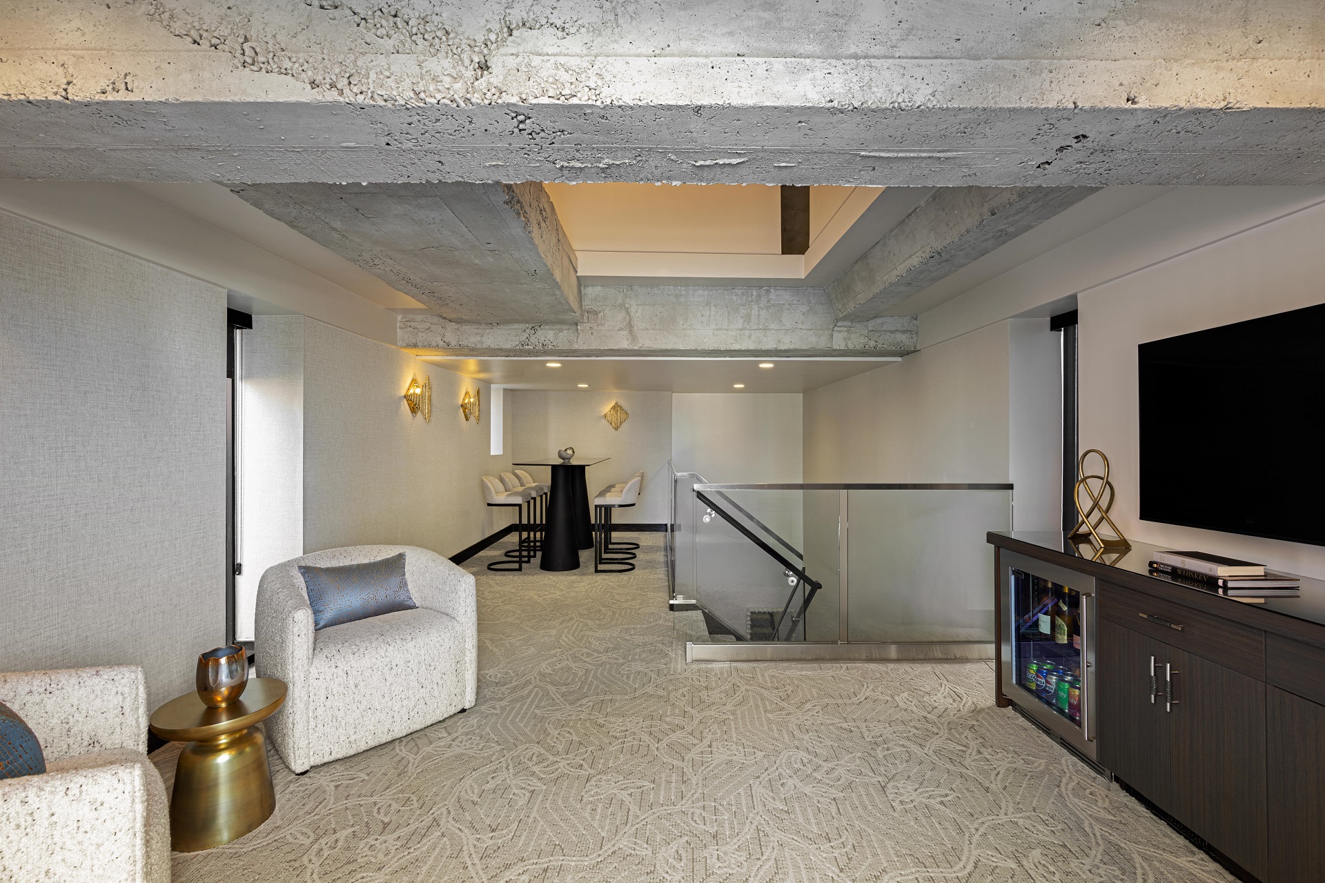 - Bar seating on upper floor